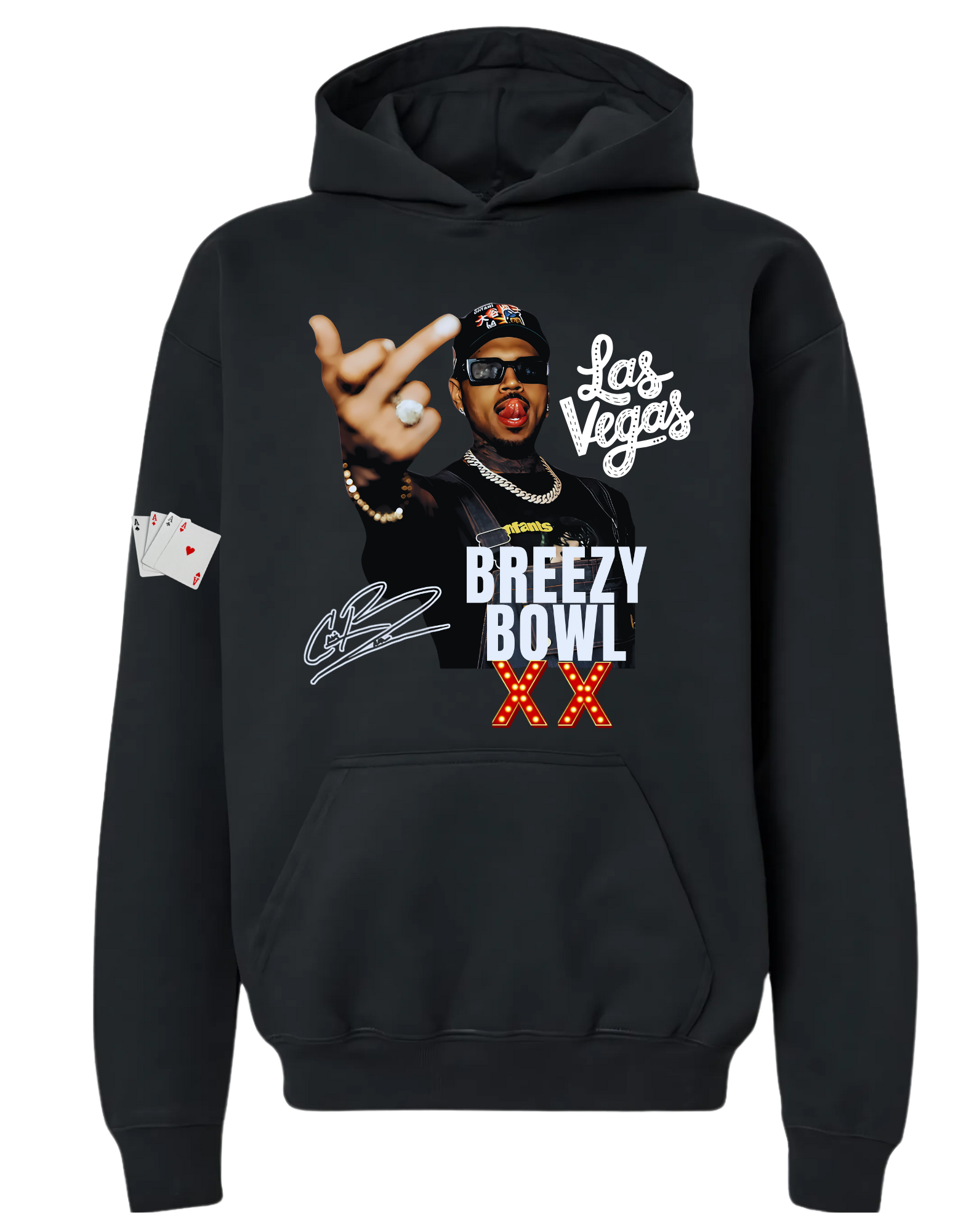 Rep the Breezy Bowl in true Sin City style! This custom hoodie brings the lights, the vibes, and the Vegas energy all in one cozy fit. Limited edition, made-to-order—because your look deserves to stand out.