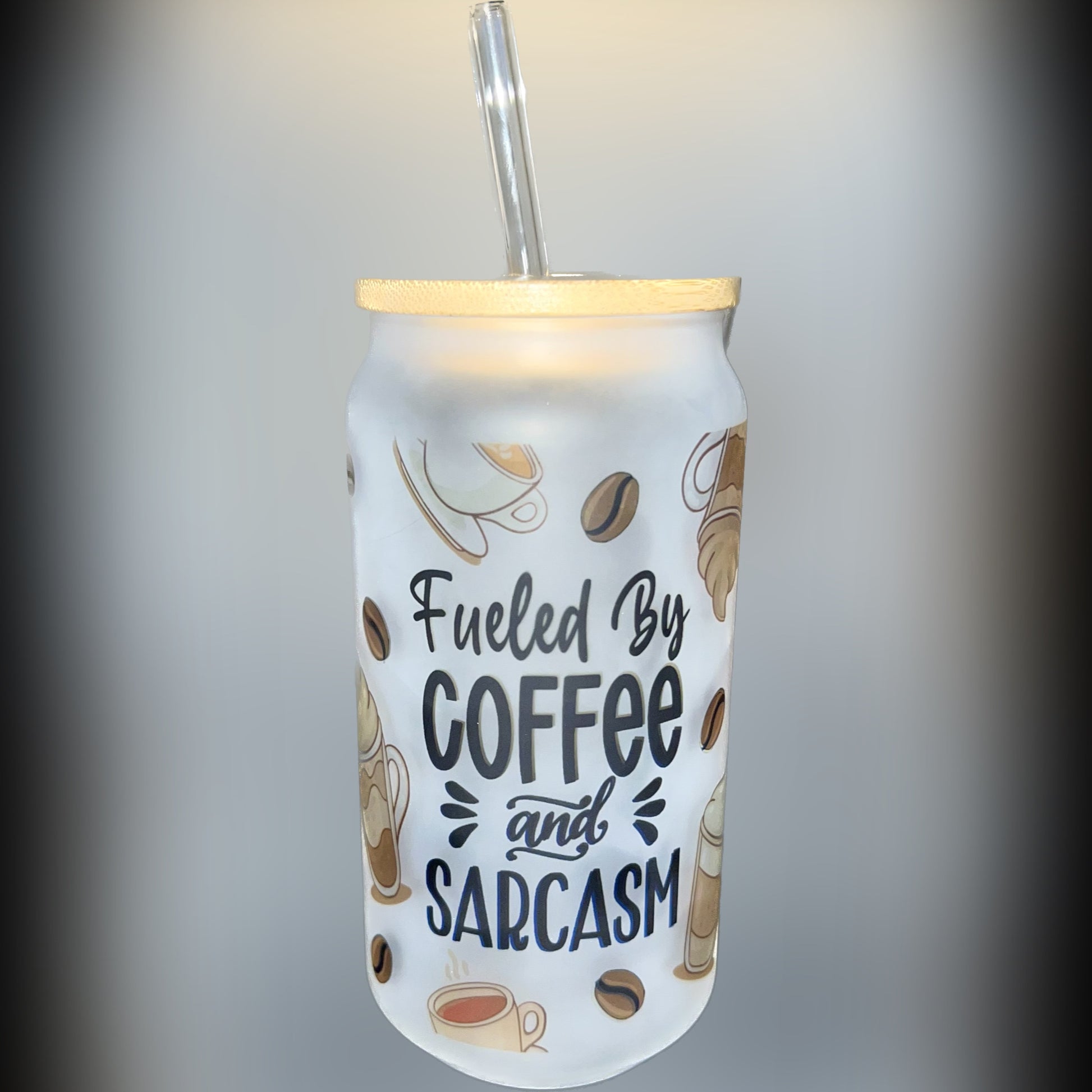 Frosted 18 OZ with Bamboo Lid and Clear Glass Straw Beer Cans Wide Mouth Jar Tumbler Cups Mugs for Iced Coffee,Juice,Soda,Drinks,Beer